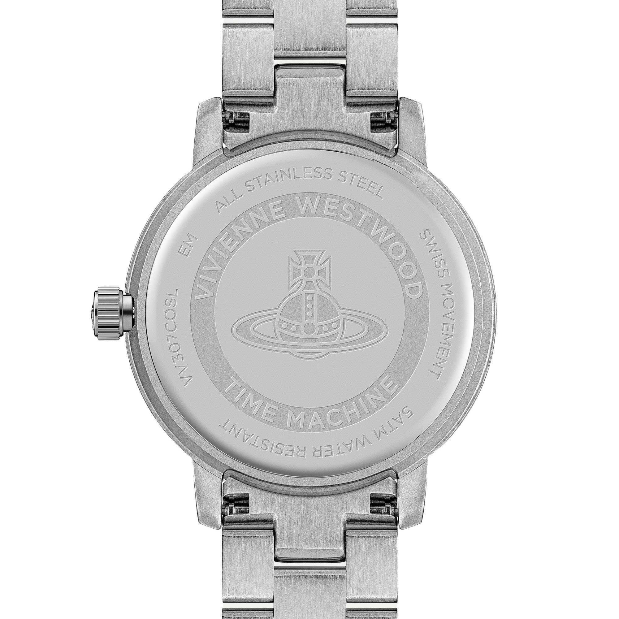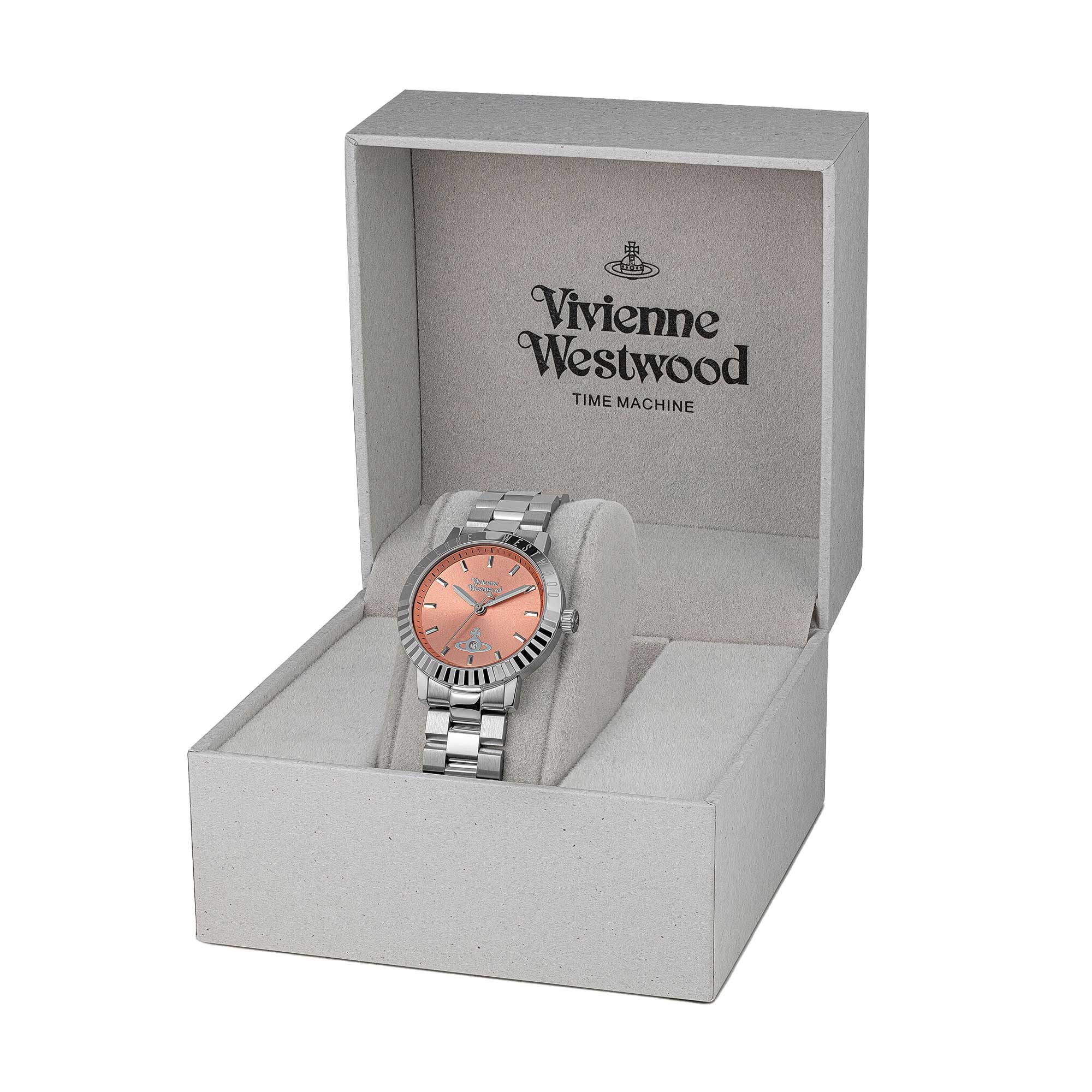 The metal bracelet strap combines comfort and style, featuring a secure folding clasp for easy wear. This watch is thoughtfully presented in Vivienne Westwood's signature packaging, making it an exquisite gift for her.