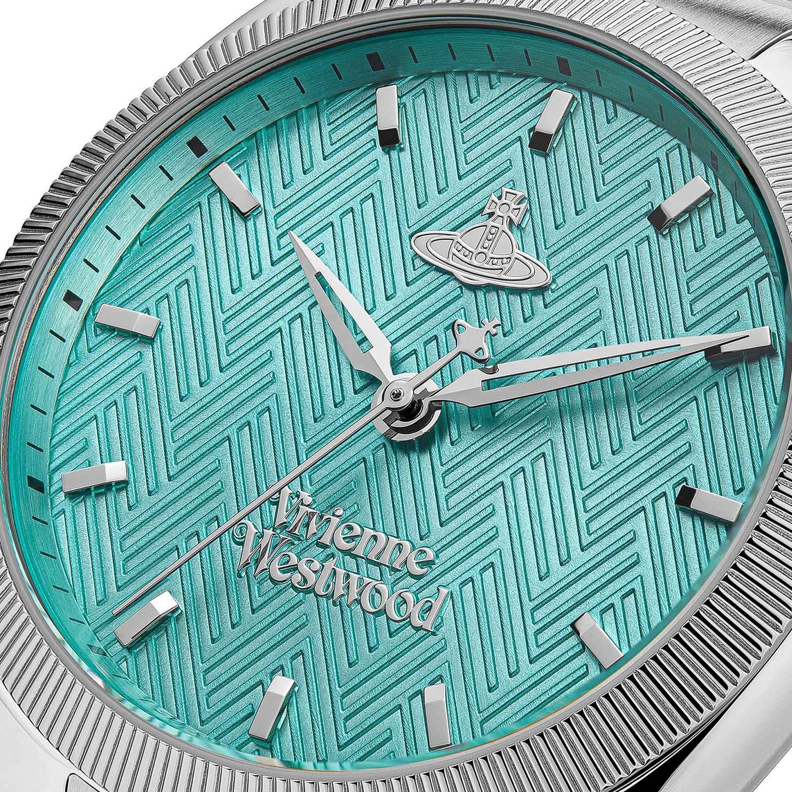 The Mews collection takes inspiration from the famously romantic and charming London mews with their cobblestone streets and pretty coloured houses. Effortlessly stylish, this Vivienne Westwood watch is presented on a stainless steel bracelet and finished with a butterfly clasp. Showcasing a distinctive turquoise dial with stainless steel hands and hour markers, will enhance every look with the perfect touch of designer style. The 37mm stainless case with 50m water resistance is accented by a fine coin-edged detail on the bezel and on the bracelet. Shop now at Chisholm Hunter and take your look from day to night with this fashionable timepiece.